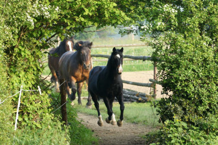 Unsere Pferde sind nicht in Boxen eingesperrt, so dass sie sich immer frei bewegen können. Dadurch können sie ihrem Bewegungsdrang nachkommen und in einer festen Herde mit sozialen Bindungen leben. Pferde, die so gehalten werden, haben eine deutlich höhere Lebenserwartung als die Kollegen im Stall und sind viel ausgeglichener und ruhiger im Umgang.