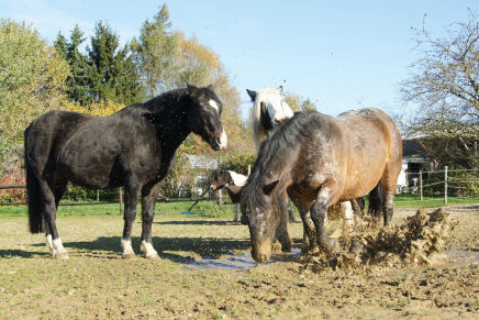 Pferde wälzen sich auch gerne im Matsch.